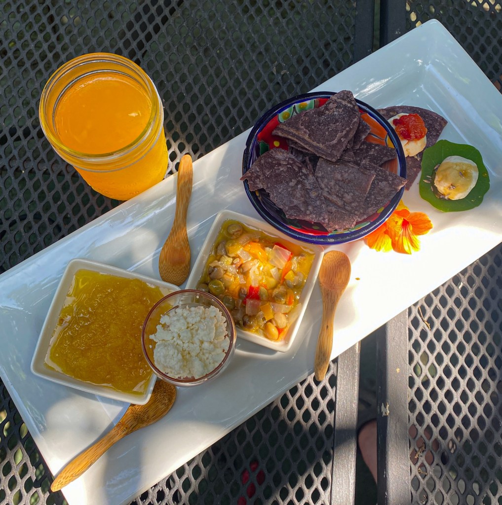 El enfoque en Frutos del Guacabo en términos de producción está en sus productos de valor agregado como mermeladas, encurtidos y escabeche, que es un método popular de conservación en aceite utilizado en la isla. En este punto, Angie y Efrén me presentaron el plato más hermoso de comida, representando la abundancia local en su finca y de productores cercanos.