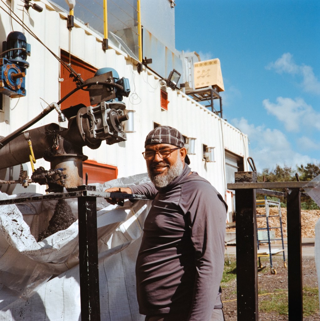 Getting to spend time at the biochar production site was a special experience, aside from the fact that I have spent years nerding out on the subject. What I was witnessing was the largest scale biochar production in all of the Caribbean. One of the people that I met as a part of this operation is Robert Omi, who is responsible for the settings on the Dragon, the pyrolysis machine at the production site. I sat with Robert while he showed me some of the settings on the monitor for the Dragon, and we discussed some of the decisions that he is faced with as an operator. Later, he started to tell stories about his childhood. He grew up in Hormigueros, and can remember seeing trucks transporting sugarcane in and out of the town, which he used to make drawings of in school. It is a full circle moment for him to return to his home town and play such a major part in the biochar project taking place at the old mill.